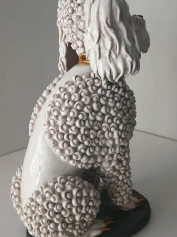 Preciosa y exclusiva cerámica esmaltada que representa un perro de mirada intensa, un increíble pelaje rizado y unas enormes uñas que lo conviertes en una obra extremadamente rara y única. Sellado en la base.