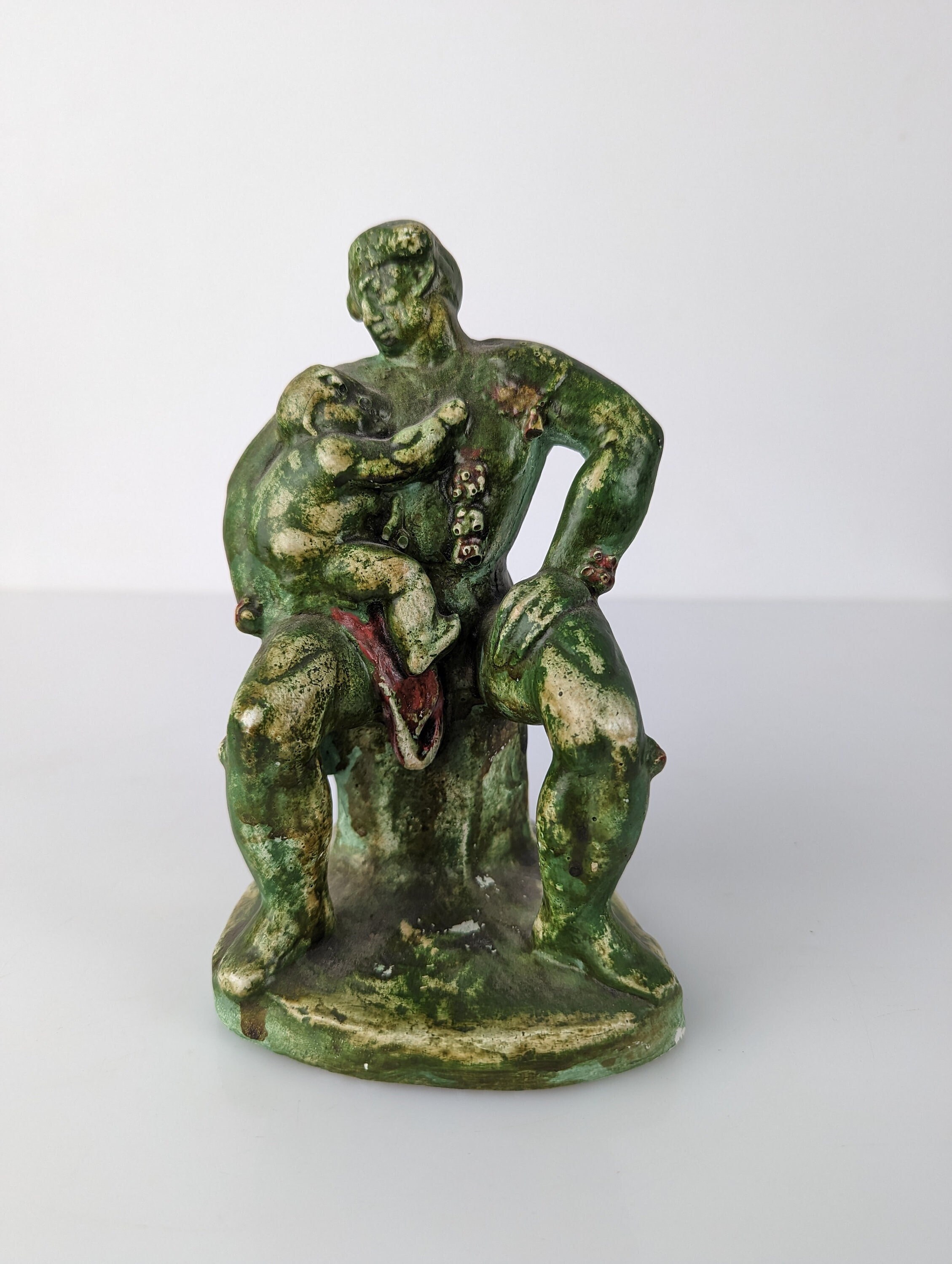 Escultura de yeso patinado en uno de los colores más difíciles de ver en la obra de Manolo Hugué, firmada y catalogada en bronce en el libro “Manolo” de Montserrat Blanch. Representa a un torero y su hijo intercambiando miradas complacientes. Es una obra atrevida temática y formalmente, siendo la culminación de la carrera del artista Manolo Hugué. Formado en la Escuela de la Lonja de Barcelona, entabló una estrecha amistad con Picasso y otros artistas en París, donde trabajó de manera sublime en escultura y joyería. En su producción artística destacó siempre la fusión de la tradición clásica mediterránea y el arte de vanguardia europeo.
