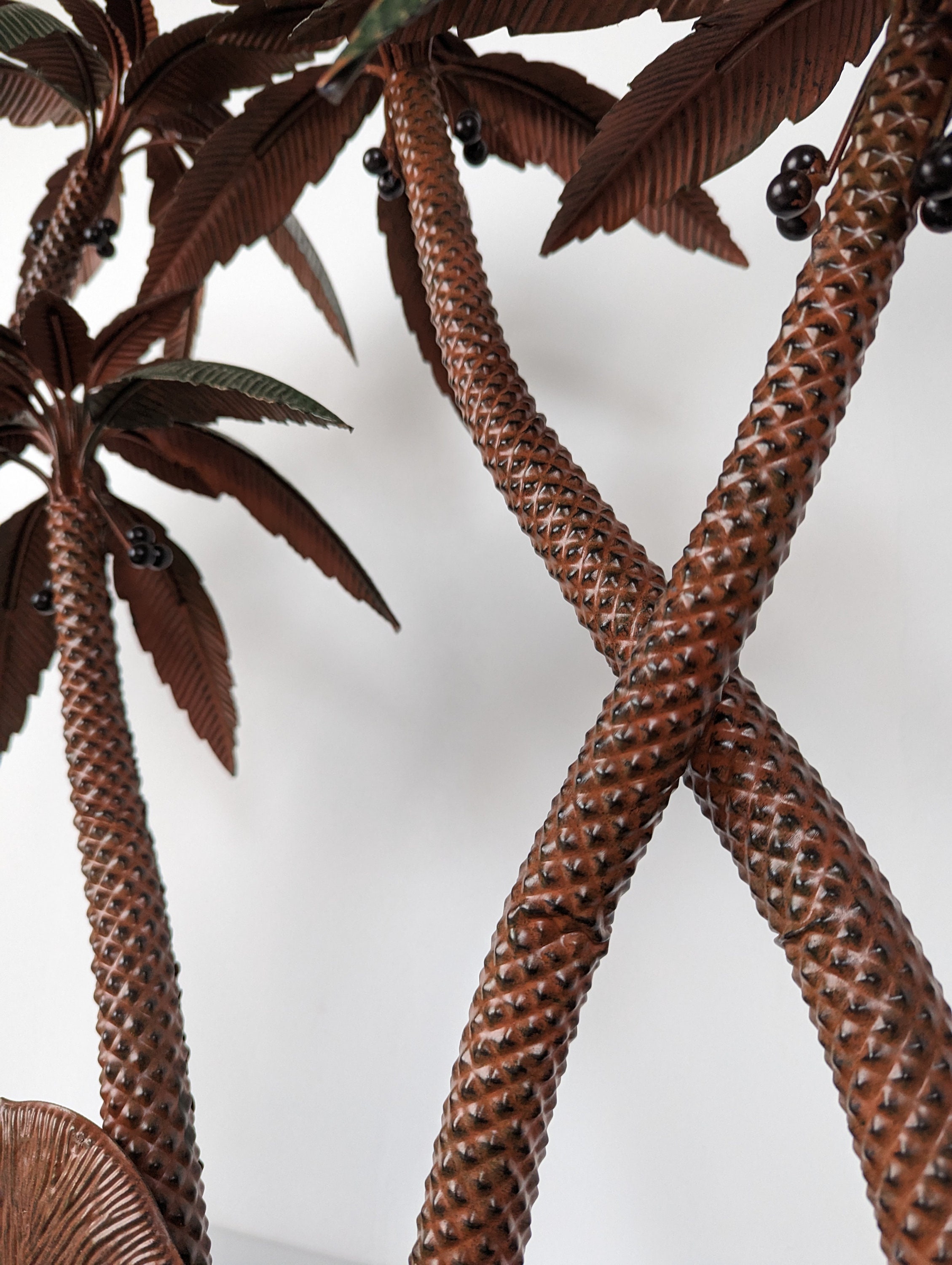 Espectacular escultura de origen austriaco de gran tamaño realizada en metal representando animales bajo un conjunto de palmeras.