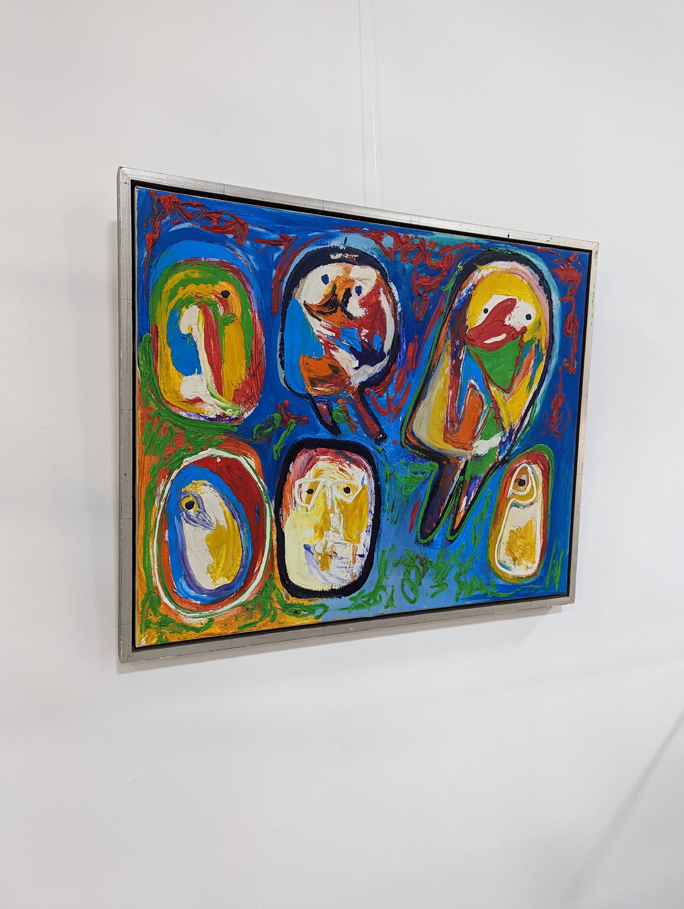 Maravillosa obra del artista danés Finn Pedersen, nacido en 1944 en Bornholm. En 1966, expuso con artistas del grupo CoBrA como Asger Jorn y Karel Appel. Su obra está claramente influenciada por el estilo informal de pintura de estos artistas. En pinceladas rápidas, Pedersen hace que los colores fuertes se apliquen muy densamente, de modo que una superficie en movimiento, similar a un relieve. A partir de los enérgicos gestos del pincel se forma una estructura completa de rostros abstractos.