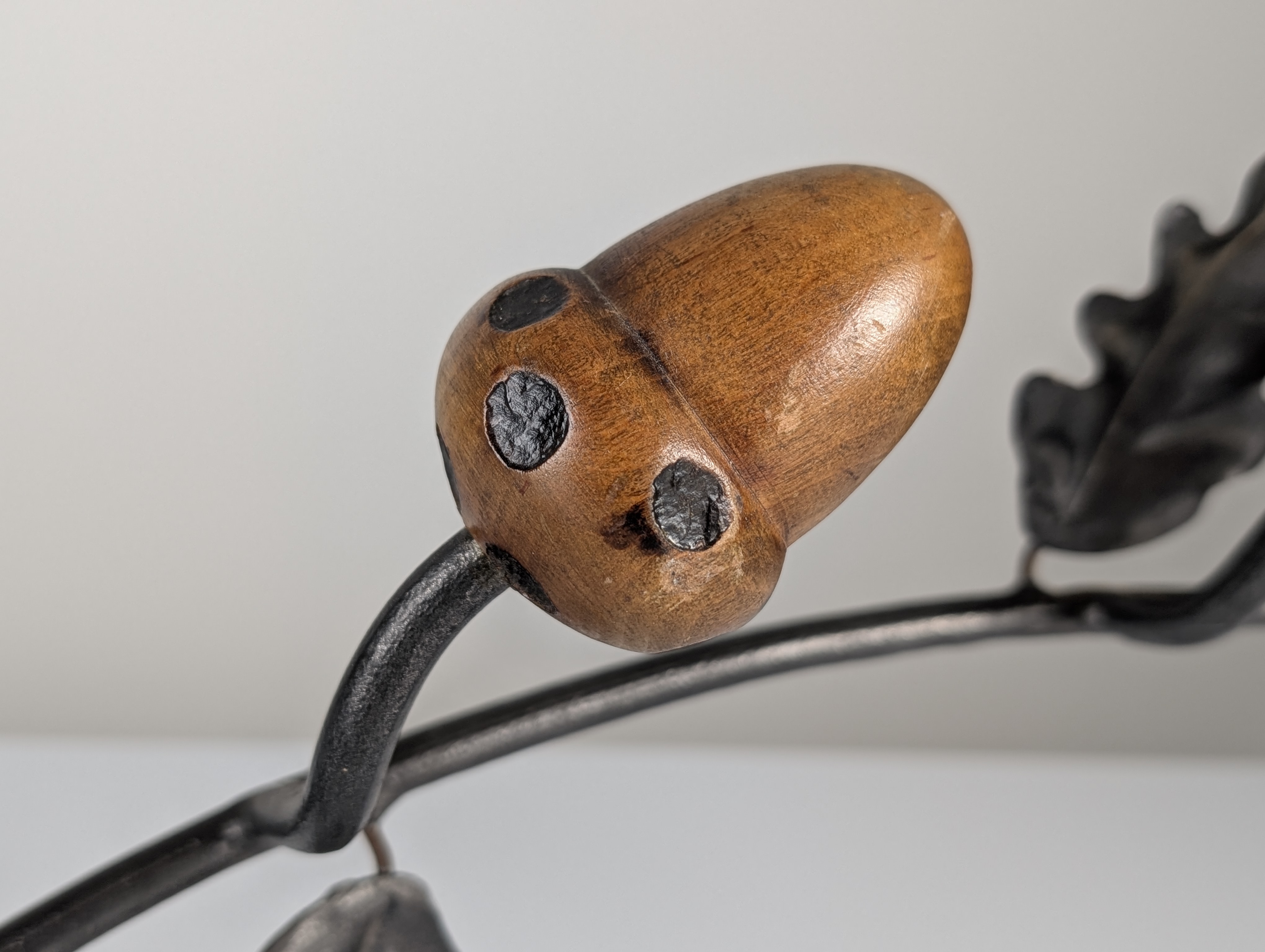 Firmado Hierro Forjado y Madera Bellotas Perchero, 1960s
