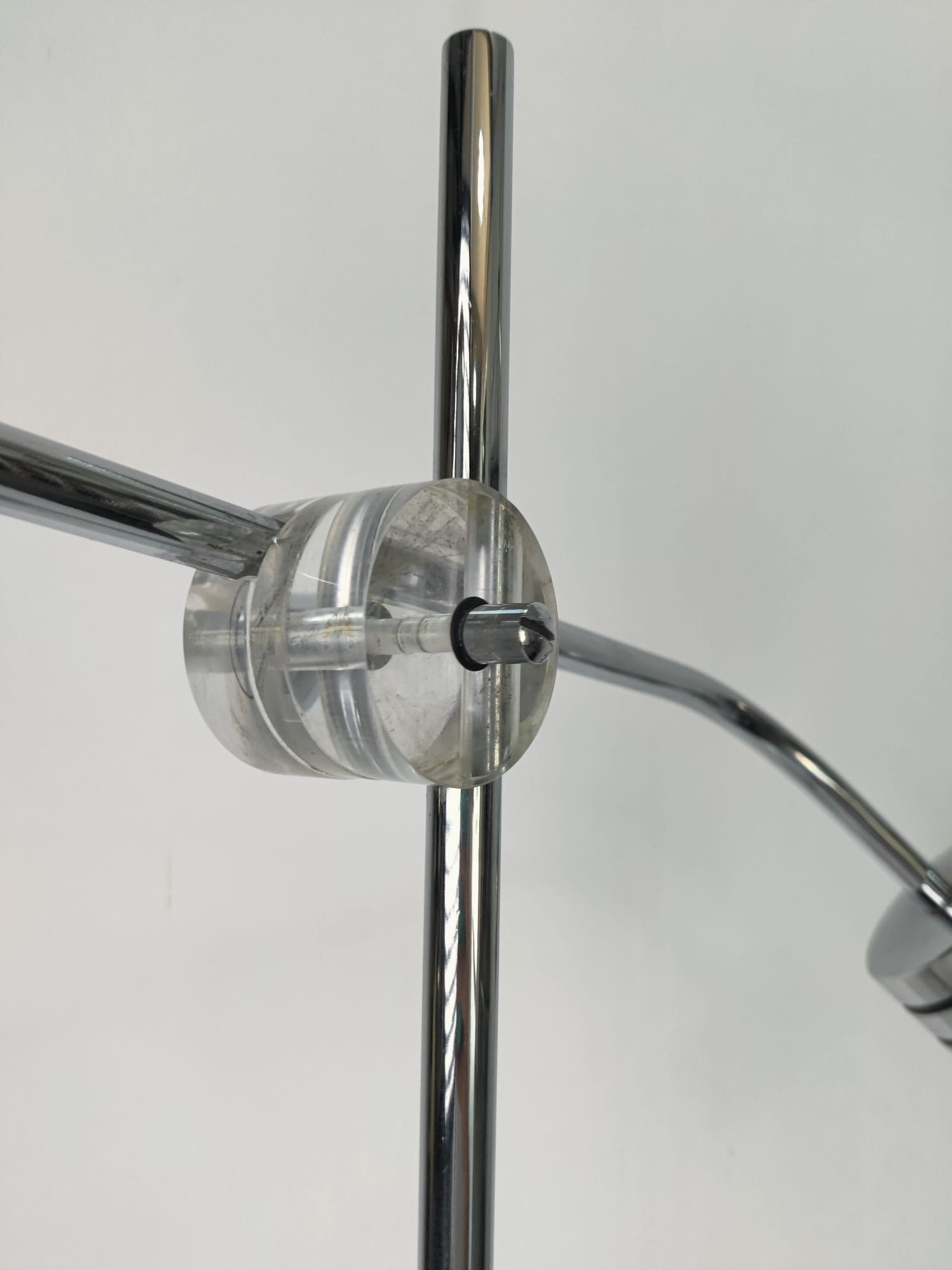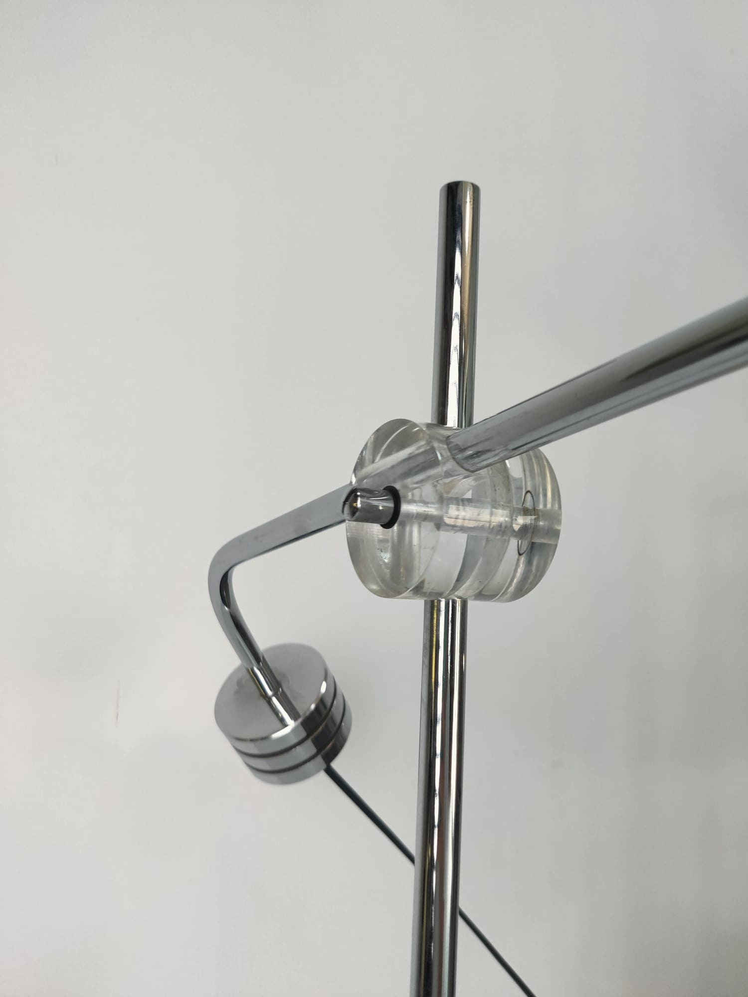 Espectacular lámpara cromada con contrapeso orientable en todos los angulos y cabezal giratorio. Diseñador a documentar.
