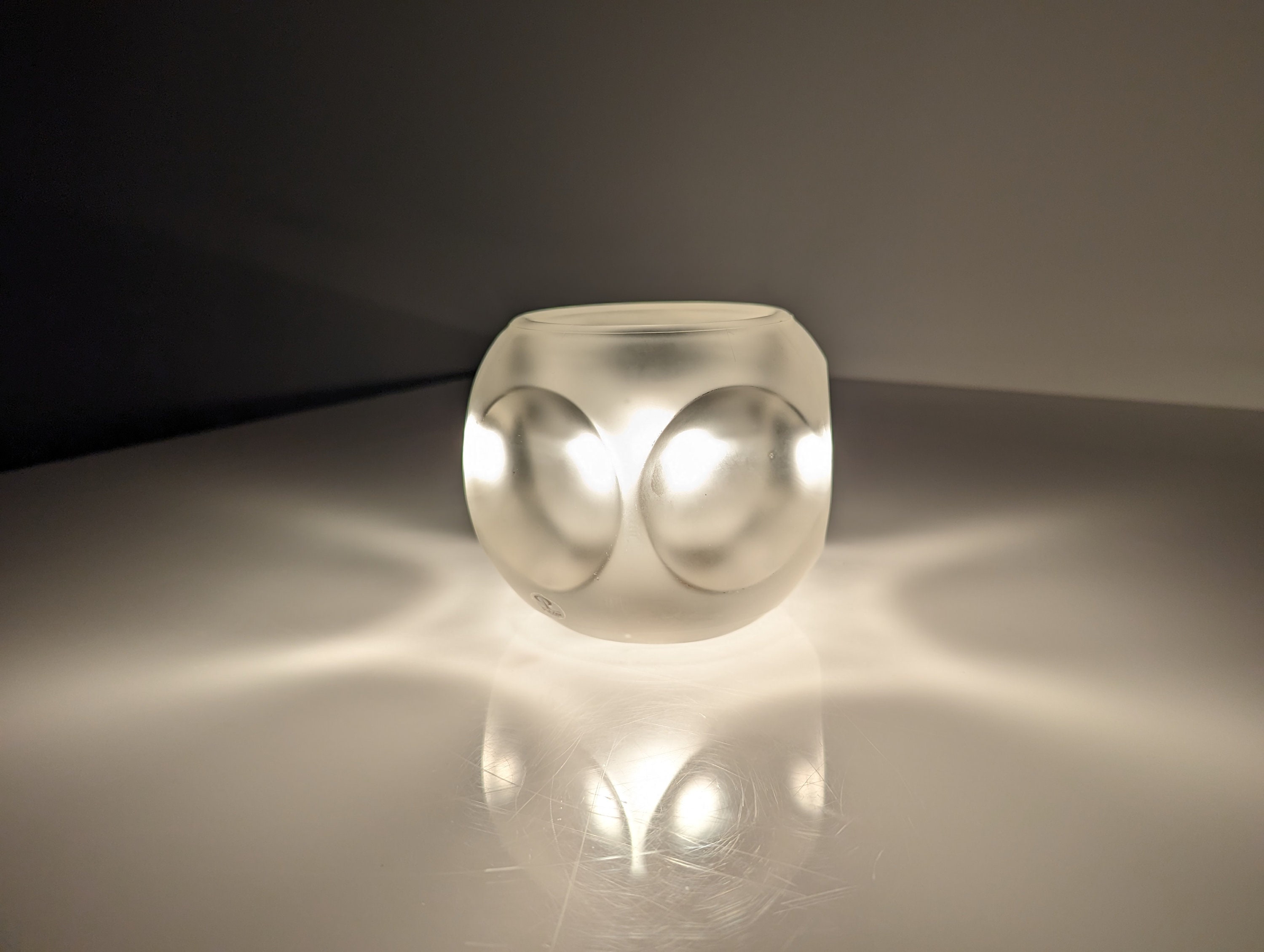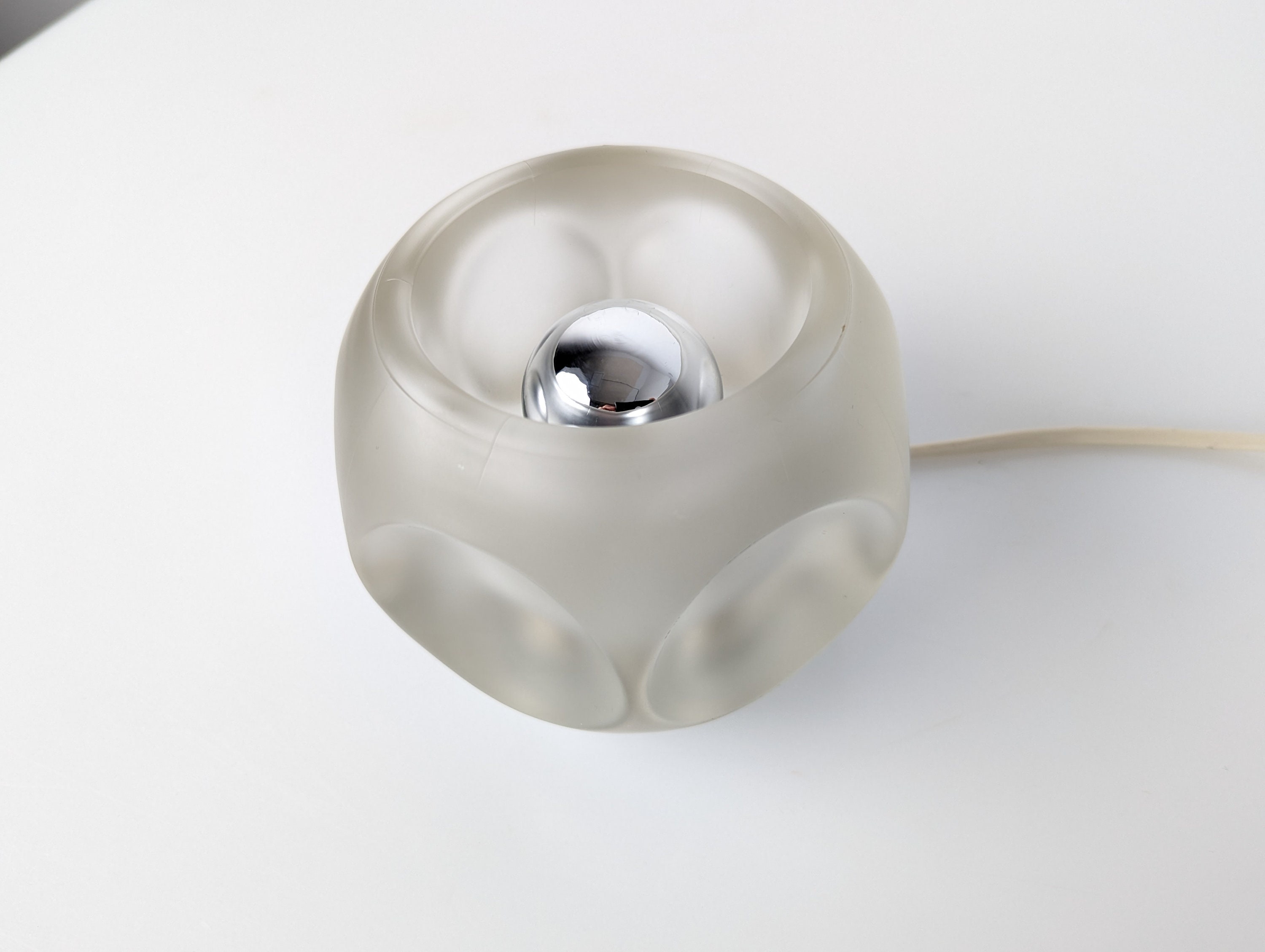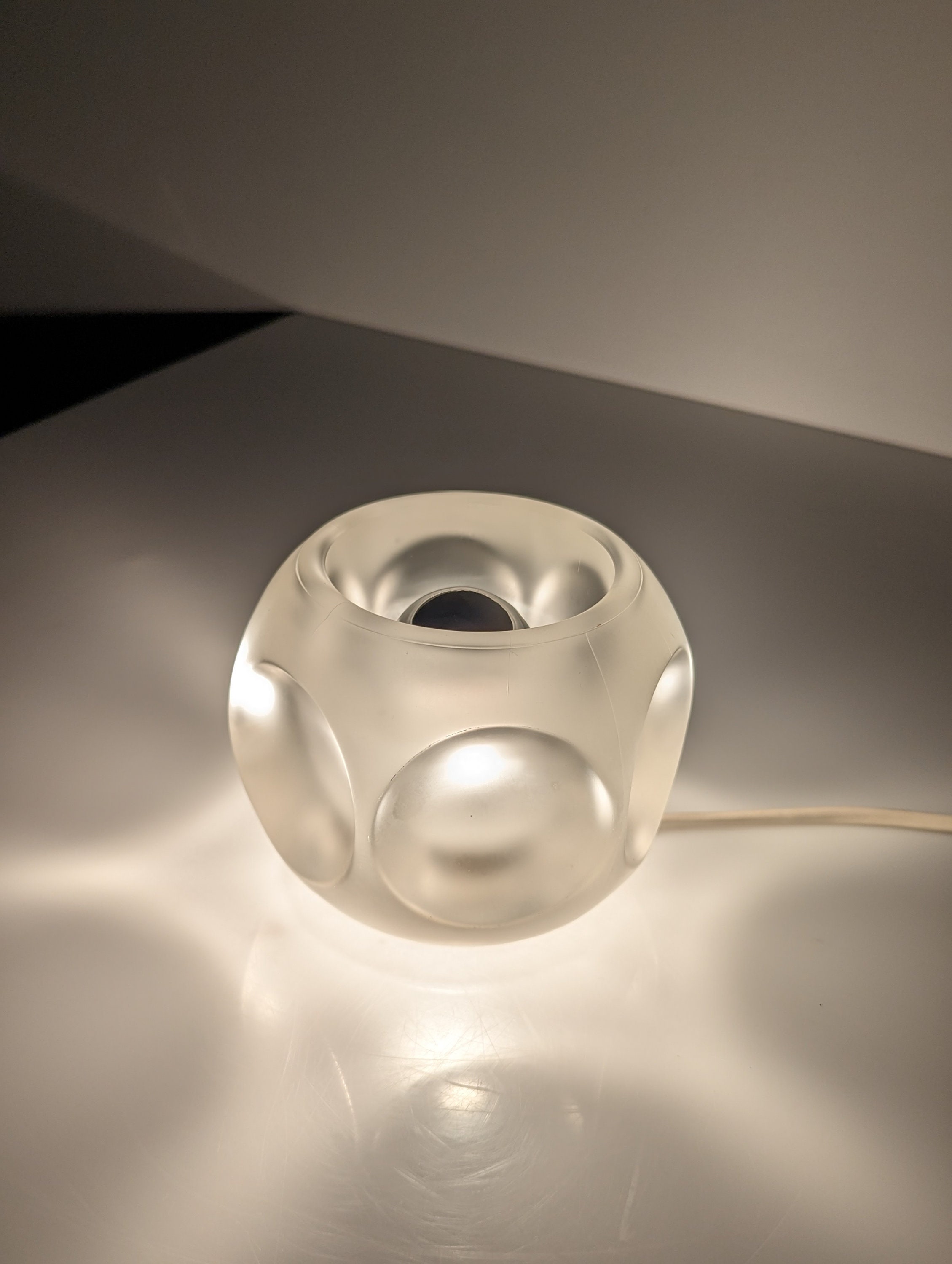 Lámpara de mesa realizada en cristal glaseado en forma de Cubo de hielo diseñada y producida por la casa alemana Peill & Putzler en los años 70.