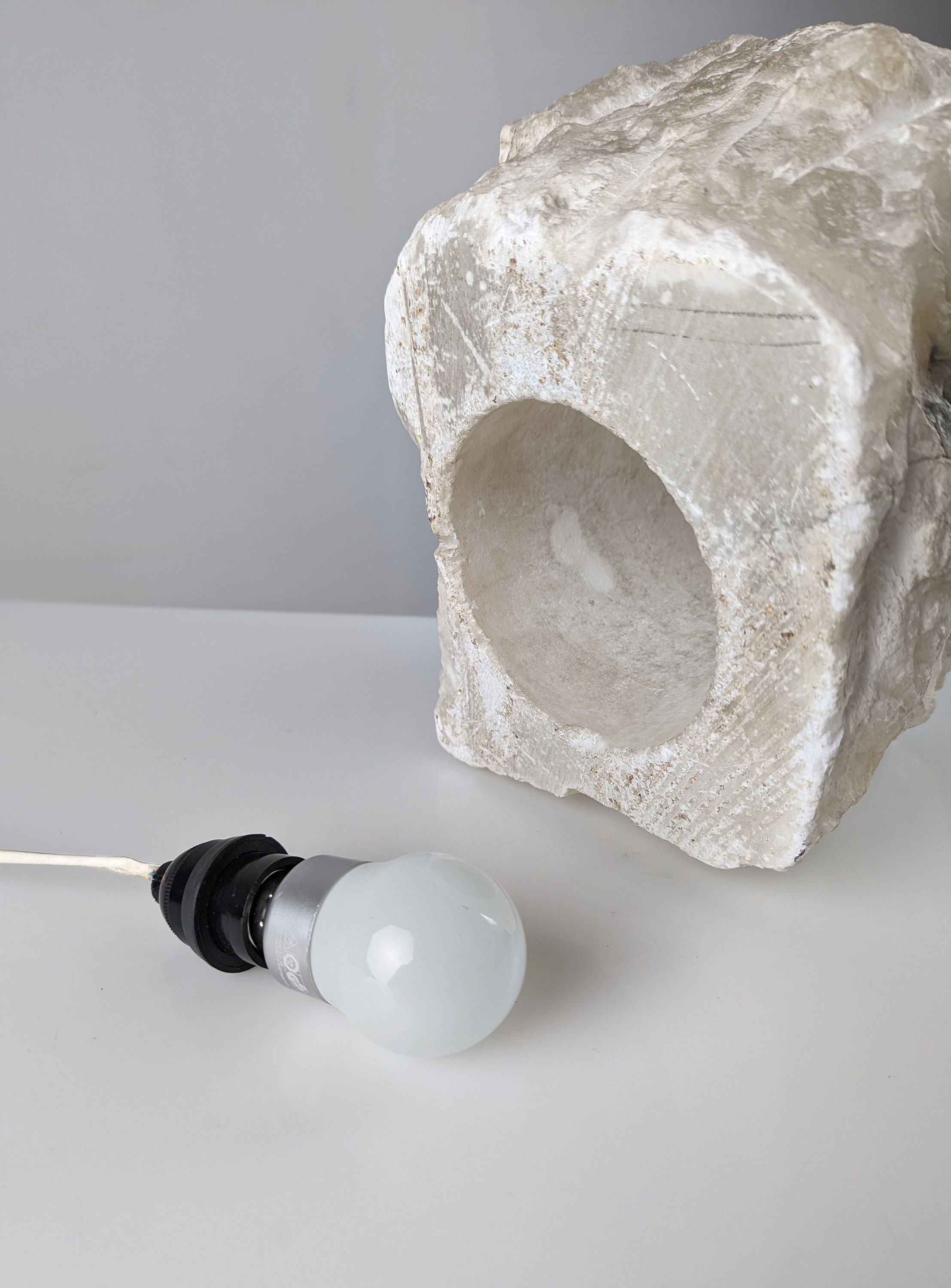 Descubre la belleza orgánica de esta lámpara de Alabastro Natural. Un objeto decorativo funcional con la fuerza visual de sus texturas que presenta la roca de alabastro en todo su esplendor. La suave luz que emana de su interior crea un ambiente cálido y acogedor en cualquier espacio. Añade un toque de elegancia natural a tu hogar con esta cautivadora lámpara.