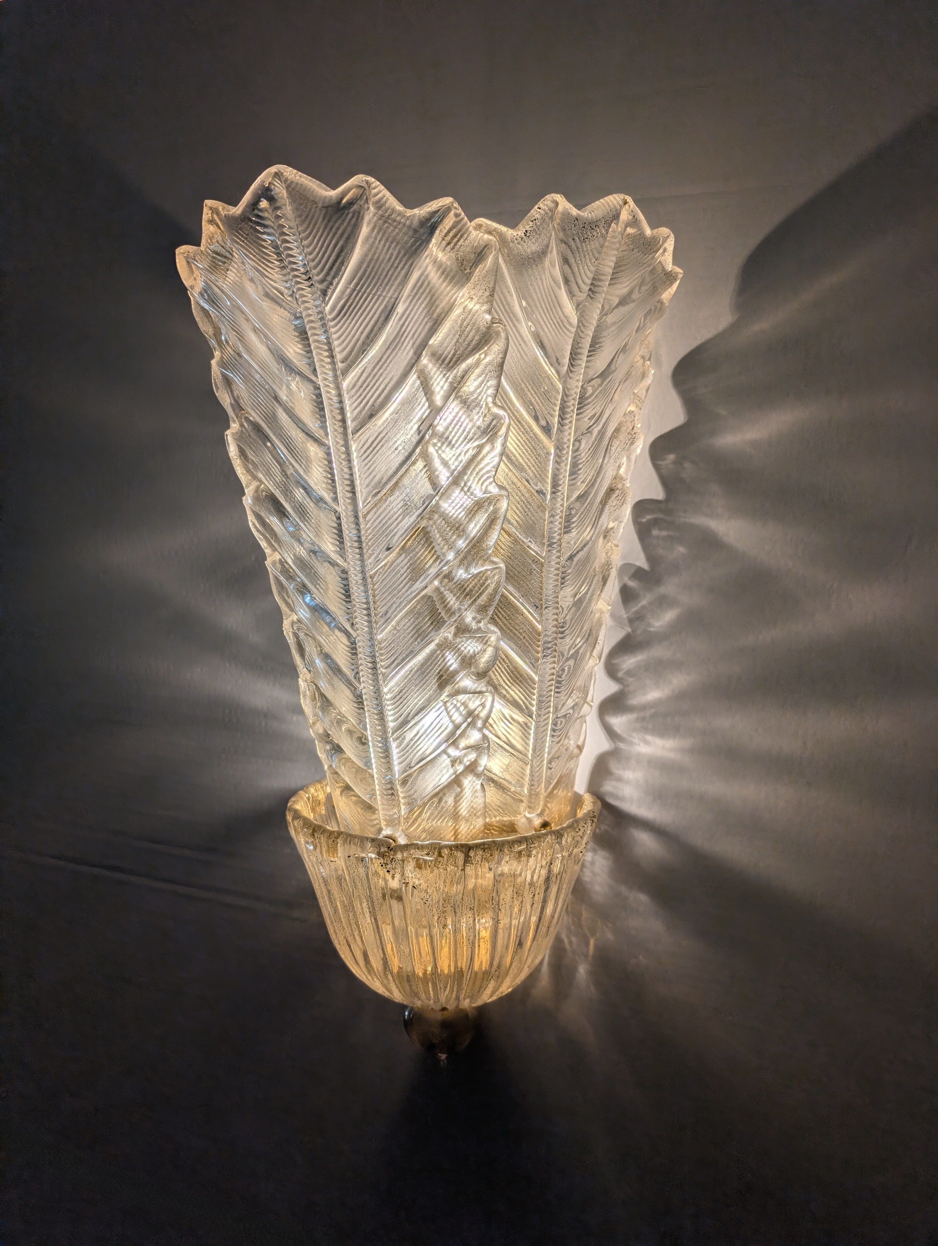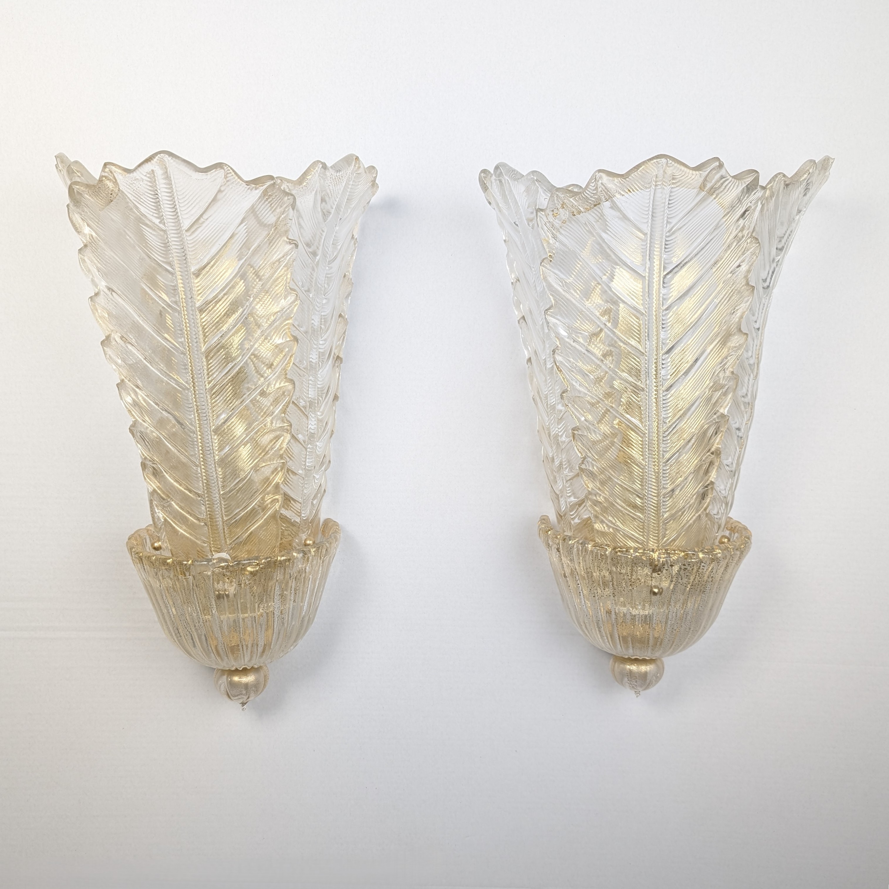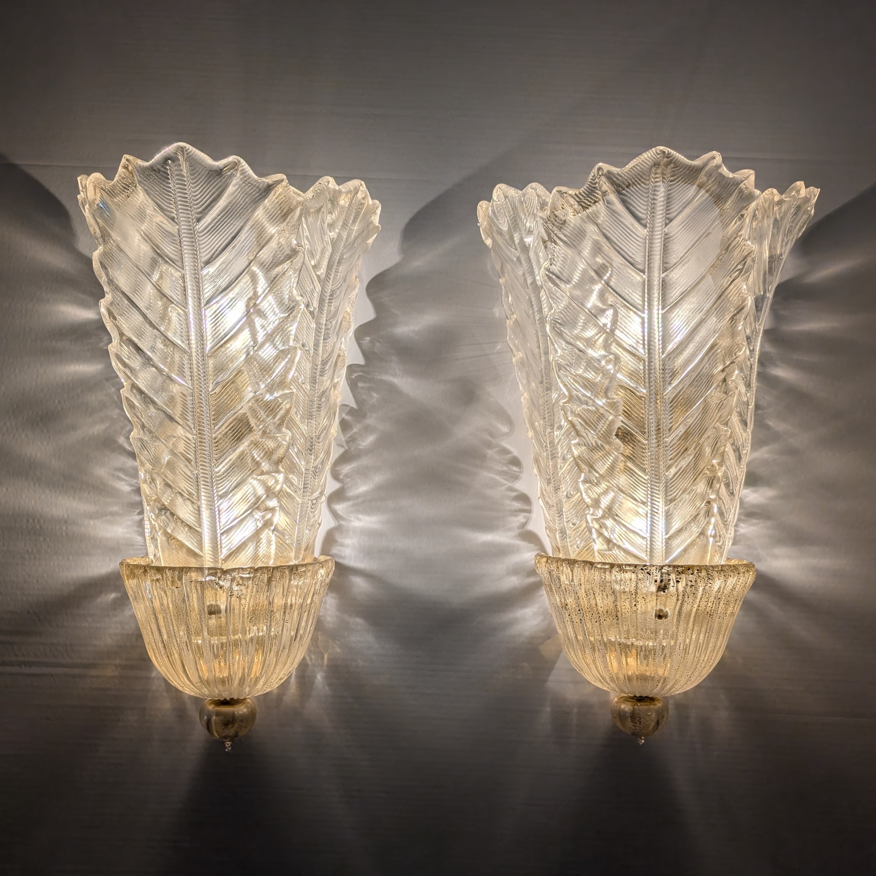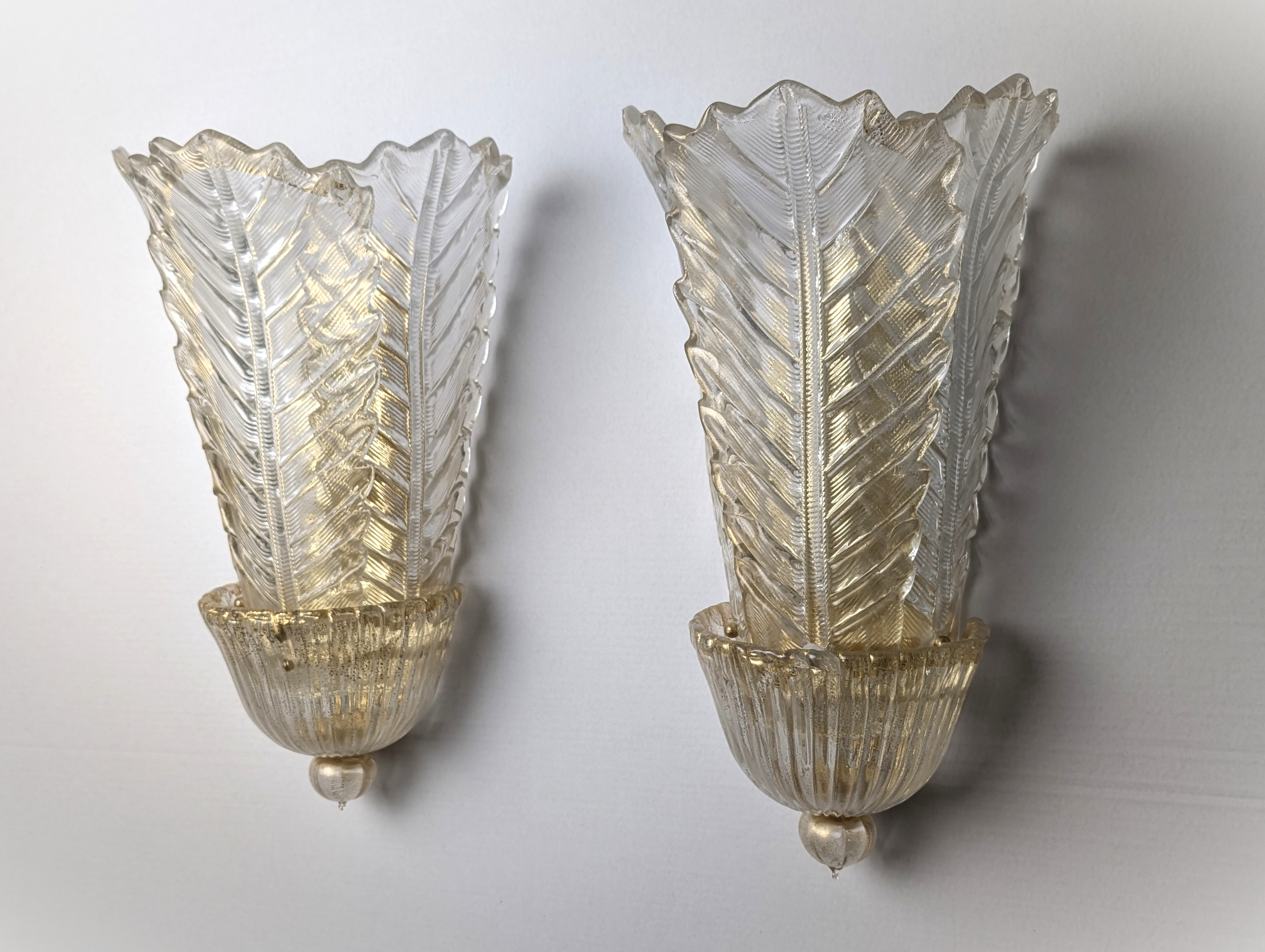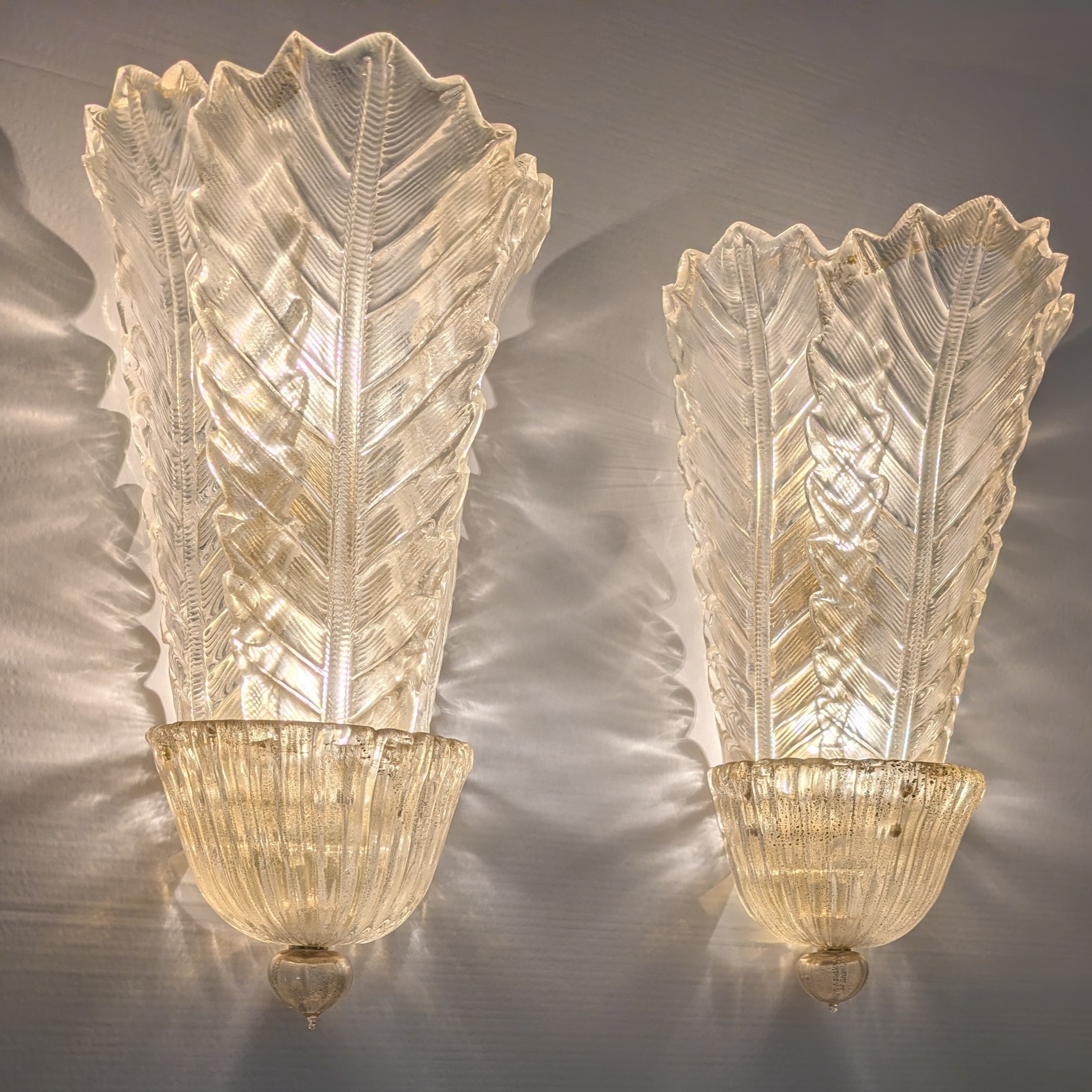 Par de Apliques Gigantes Barovier & Toso Foglia d’Oro, 1980s