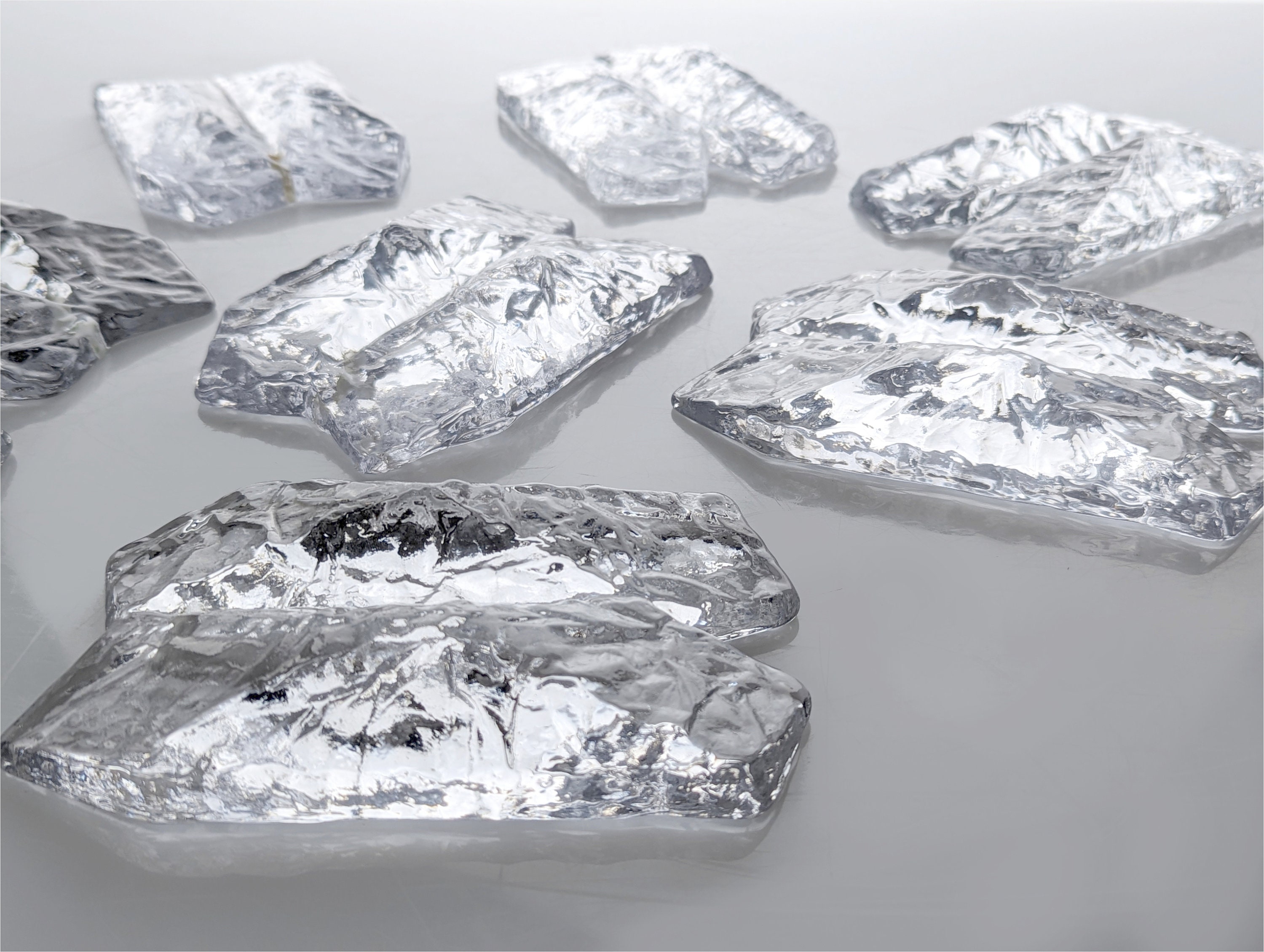 Ocho cristales de gran tamaño de la prestigiosa casa austriaca J.T Kalmar Franken quien en 1960 los conocidos cristales de hielo, todo un referente en la iluminación de diseño gracias al cristal grueso de fuertes texturas que también generan una preciosa y agradable luz.